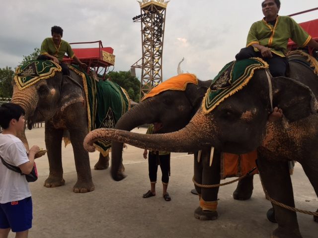 Palace of the Elephantで行われるメインのショーは、ストーリーがきちんとあり、10頭を超えるたくさんの象たちの華麗な芸だけでなく、小動物の芸、シルクドソレイユのような空中ブランコを使ったサーカス、タイの伝統芸のような影絵芝居などいろいろな要素が詰まっていて最後まで楽しめました。