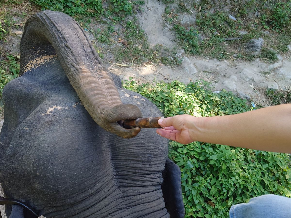 象乗り中は最初の坂道だけちょっと急で怖かったですが、あとはのんびりで良かったです。象使いにケータイを渡すといっぱい写真をとってくれます。象はこちらがバナナを持ってることを察知すると散歩中に鼻をこちらに伸ばしてくるので、手渡しでバナナをあげられます。