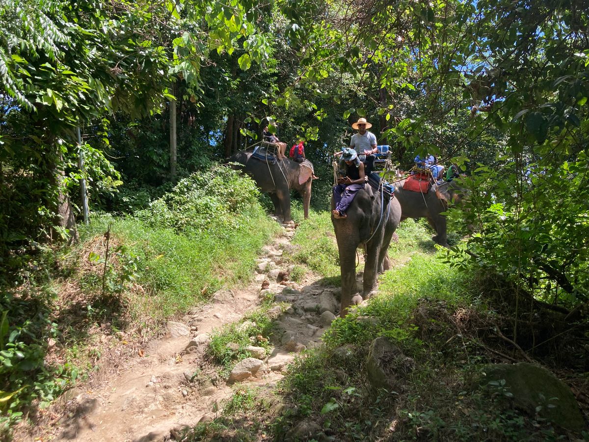 戻るのかな⁇と思いきや、象使いの方がイスの下から傘をとってくれて傘をさしながらの象乗り体験が始まりました。始めは濡れるのか、、、とマイナス思考で始まりましたが、結果は全く逆でした!