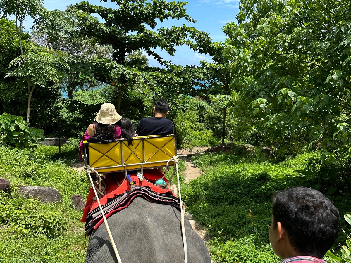 象さんがすごく急な坂道を上ったり、下ったりしてはじめは落ちそうでしたが途中から慣れてきてすごく楽しめました。スマホを象使いのおじさんに渡して動画も写真もいっぱい撮ってくれます。なかなかできない経験ができてすごく楽しかったです。象に乗っているとサンダルは落ちそうになるのでかかと(にひっかける)のあるものか、脱いでお尻の下に敷いておいた方がいいと思います。