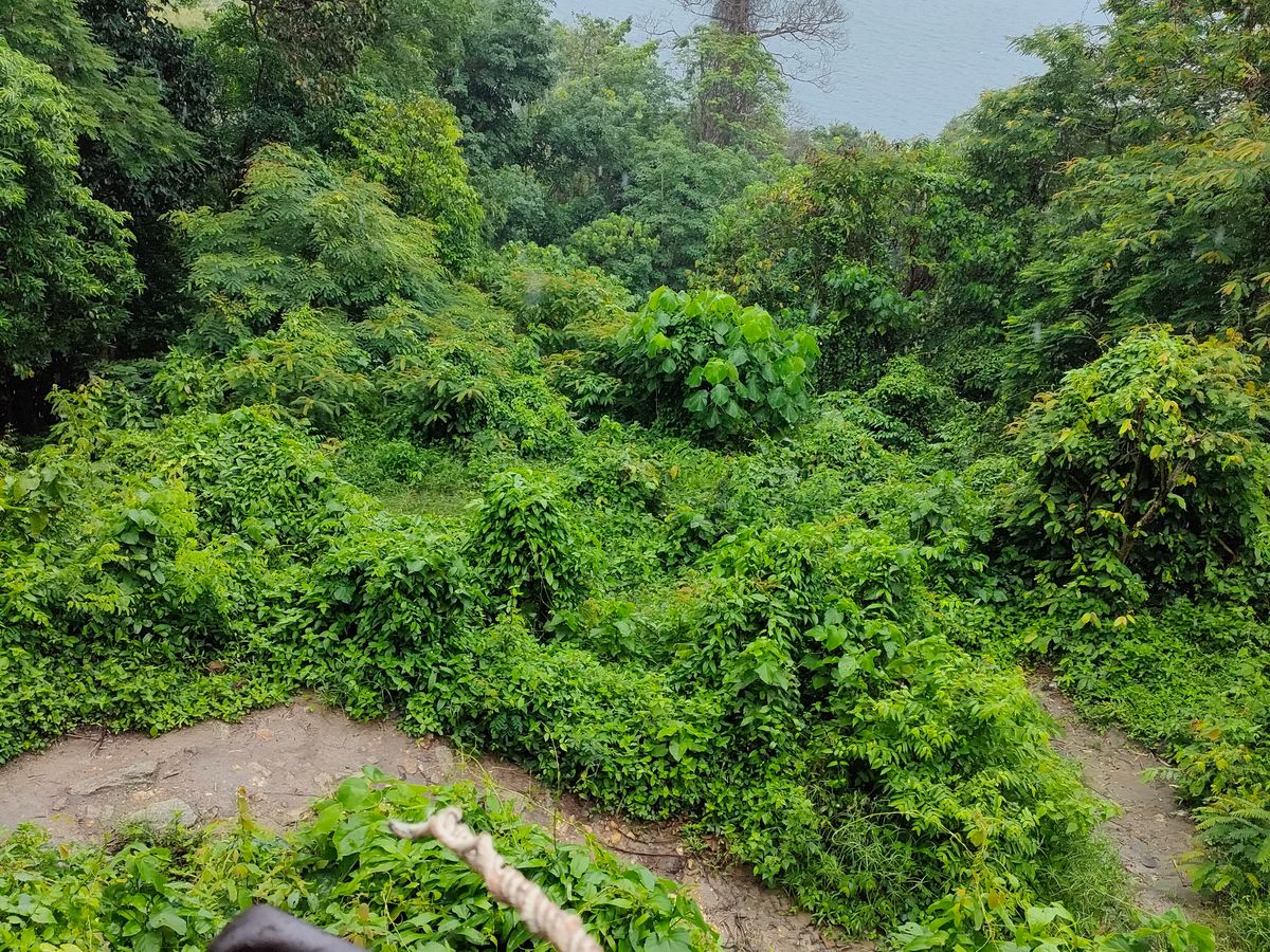 象に乗って山を登っていきますが途中の開けたところで海が見えますね^^