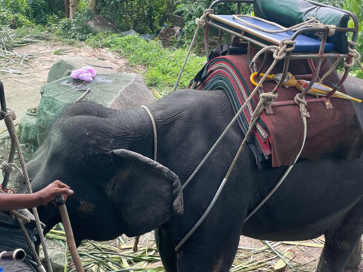 余談ですが、象のアタマ乗りで山を下るのは少し怖いです。体力が落ちてる人が油断したらたぶん落ちます。現代の日本基準だと、”安全面を考慮して…”という理由で廃止になっている気がするので、体力が不安な人は断った方がよいかもです。