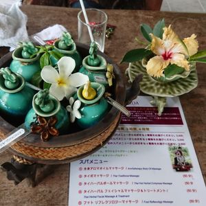 ムックダーのマッサージにアンチャンの香りにとても癒されました!お土産にオイルとシャンプーセットも購入しました♡ただ、オプションの空港までの送迎がムックダーへ伝達ミスだったことが驚きと残念です。空港まで約1時間かかり、フライトに間に合うかというハラハラの経験となりました。プーケットは信号があまりなく、道路事情も日本とは異なります。フライトについては、もう少し慎重に対応され、改善されることを期待します。