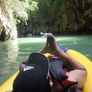 カヌーで、大自然の中を見てまわれて、感動しました!カヌーで、洞窟の中に入っていったりアドベンチャー感が強く楽しかったです。人数に対して、船も大きく他のツアーの船に比べると綺麗で、快適に過ごせました!カヌーは、現地のガイドさんが漕いでくれるので、ゆったりするだけ。ガイドさんたちのリーダーシップ、サービス精神がものすごい!ドリンク配ったり、写真をたくさん撮ってくれたりなど、とても優しかったです。昼食は、船上とのことだったので、ゆっくりできるかなと思ってましたが、船がきれいで広々してるので、美味しくいただけました!せかせかしてなく、のんびりできるアドベンチャーツアーでした!