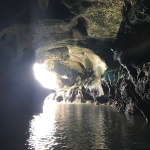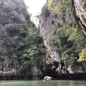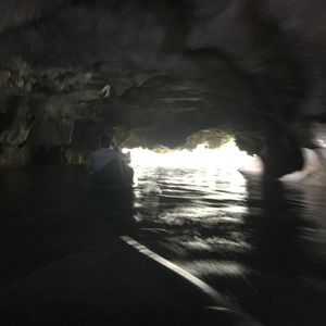 大船からカヌーで行きます。カヌーで洞窟をいくつか通ると、森が茂っている神秘的な風景にたどり着きます。ここの洞窟は、岩がサカナの形やゾウの形に見え、楽しかったです。