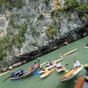 Hotelまで迎えに来てくれるので楽です。ただ港まで2時間とは、Phuketは大きい島だと実感しました。中型の船に乗るので、揺れは気にならないです。風もあり、クルージングは気持ちが良いです。シーカヌーはカヌーと言うより、ゴムボートです。想定していた幅の狭い木造の船でなく、逆に安心できます。