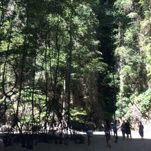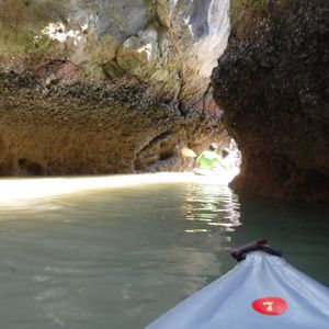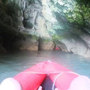 ゴムのシーカヌー体験は想像していたよりもずっと快適で楽しかった。途中暗い中を寝てくぐるところがあり、高齢の母も一緒だったので最初は少々不安だったが、そういうところはほんの一瞬でパドラーの方も丁寧に漕いでくれ、寝そべるところなどは的確な指示をくれたので全く心配なかった。また親切にいろいろ説明してくれたり写真を撮ってくれたり、漕がせてくれたりした。洞窟の中は浅瀬で不思議な風景で、ボートから降りて歩いたり写真を撮ったりした。猿もいた。カヌーには少しだけど水が入ってくることもあるので、後半泳ぐつもりがなくても中に水着を着るか、濡れても乾きやすい恰好で行くのがいいと思う。