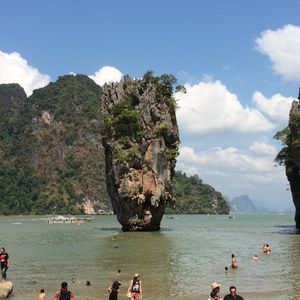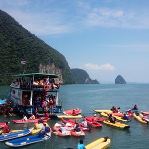朝8:00、満腹のお腹を押さえながらホテル前ロビーで迎えを待ちました。程なくして1台のハイエース到着。運転手さんは相変わらず寡黙でしたね。乗り合い号で港まで約1時間、ようやく到着すると世界の縮図がそこにありました!言葉はわからないままレッツゴー!緩くも統率力で約100人の世界大移動です。船に乗り込みコーラ、水の秩序の保たれた飲み放題。又バナナのサービスもあり、バンガー湾までまっしぐらです。途中で3プラス1のカヌーに乗り換え2箇所途中下車。同じタイ人の方にこの身を任せ運命共同体です。何箇所かで記念撮影もして頂きスマホもご満悦です。悔やまれるのは2箇所目を終わってチップを渡せなかった事ですね。それくらい良く働いています。日本での自分が恥ずかしくなるくらい、、、それから船はジェームスボンド島に降り立ち約20分の記念撮影タイム。そして帰路に向かうかたちです。本ツアーは異国の方と触れ合う本当に良いツアーです。たまには日本人に会わないツアーも良いのでは。オススメですよ!そうそう、タオルは小さいものでオッケーですし、汚れて良ければ水着着用も必要ありません。