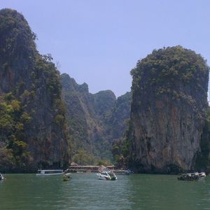 次はジェームズボンドのロケ地で有名なジェームズボンド島(そのまま!)海の中に突き刺さっているような岩が有名で、皆思い思いのポーズで写真をとっています。島の中には小さなお店が沢山ありますが、値段は高いようです。。小さな島なので、すぐにまわることができます。