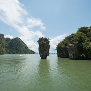 静かなグリーンの海に顔を出す島々の景観がすばらしい「パンガー湾」。湾の中には161もの小島が浮かび、中でもピンカン島にある、大きなくさびを海に打ち込んだような形の岩は映画『007・黄金銃を持つ男』で登場し、一躍有名となりました。現在でも「ジェームス・ボンド岩」と呼ばれて人気があります。 石灰岩地帯なのでいくつかの島には洞窟があり、美しい鍾乳石が見られます。タイ、プーケットの開放感の元でエンジョイするパンガー湾のオプショナルツアー。友人、ご家族、恋人と、思い出に残るひと時をお楽しみください。