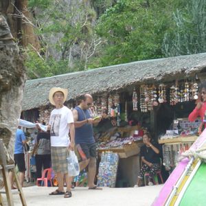 そのあとはピンカン島を観光。ここもなかなか険しい岩道を移動するので歩きやすい靴が良いですね。ここではツアー会社の方や参加者の方と一緒に写真を撮り、とても楽しかったです。観光客も多かったです。ここでもお土産が売ってました。