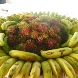船上での食事の感想は、個人差があると思いますが、私的には、まぁまぁだと。食後に「すいか」と「パイナップル」も頂きました。現地の方は、「パイナップル」にラー油のような物を付けて食べていました(~_~)