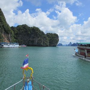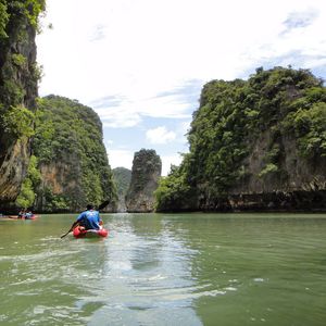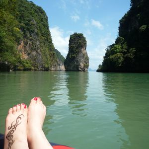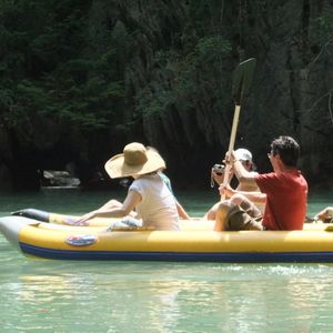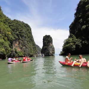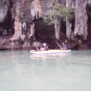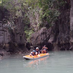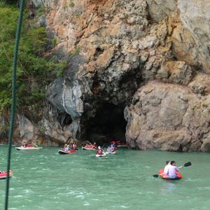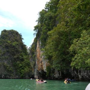 大型ボートでジェームズボンド島に向かい、1時間半で到着。そのあと移動し、洞窟のある複数の島をシ―カヌーで探検しました。ツアースタート当初は大雨でしたがシーカヌーに乗るときは不思議とやみました。カヌーで洞窟を抜けると入江みたいになっていて紅の豚の主人公の隠れ家みたいなイメージでした。不思議でここでしか体験できません。お勧めです。