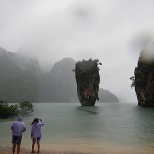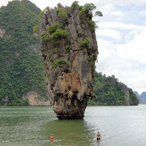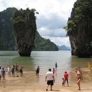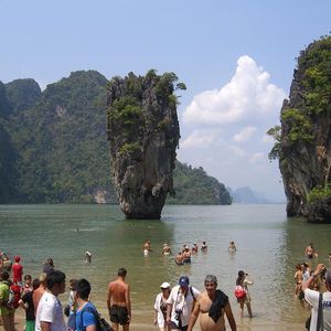 静かなグリーンの海に顔を出す島々の景観がすばらしい「パンガー湾」。湾の中には161もの小島が浮かび、中でもピンカン島にある、大きなくさびを海に打ち込んだような形の岩は映画『007・黄金銃を持つ男』で登場し、一躍有名となりました。現在でも「ジェームス・ボンド岩」と呼ばれて人気があります。 石灰岩地帯なのでいくつかの島には洞窟があり、美しい鍾乳石が見られます。タイ、プーケットの開放感の元でエンジョイするパンガー湾のオプショナルツアー。友人、ご家族、恋人と、思い出に残るひと時をお楽しみください。