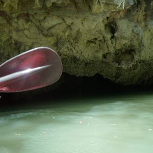 カヌーで行く洞窟は、日本の鍾乳洞を暑くしたような感じです。