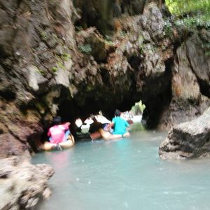 途中カヌーに乗ったり、鍾乳洞みたいになっている場所をくぐり抜けたり冒険しているようでした。