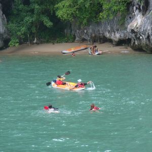 見たことのないような岩みたいな島?でのカヌー♪かなり秘境で興味深々でした。お昼ごはんも美味しかったし、他の国の方との交流も出来てとても楽しかったです!!最後には船から落としあい!?スタッフの方もノリのいい方でかなり楽しめました!!