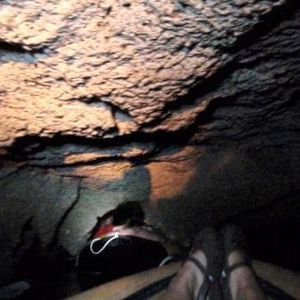 洞窟が本当に狭くて低いので、カヌーの中で身を小さくして寝転んだり、かがんだりします。