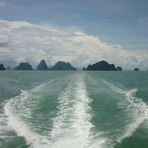 海風に吹かれながらコーヒーを飲んだり、タイの桂林(?)の奇岩を眺めたり。ジェームスボンド島に上陸したり。