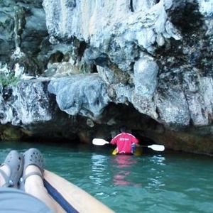 シーカヌーで鍾乳洞の下をくぐったり バッドケイブで真っ暗の洞窟で