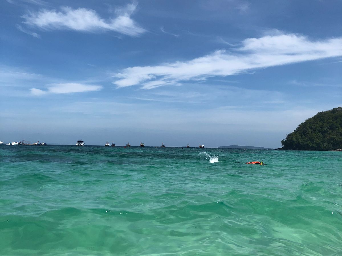 雨季での参加で、前日ピピ島がかなりの荒波で45分くらい船乗ったので酔う人続出だったのでコーラル島が心配でしたが、15分くらいで酔わず揺れず雨季なのにビーチも最高に綺麗っっ