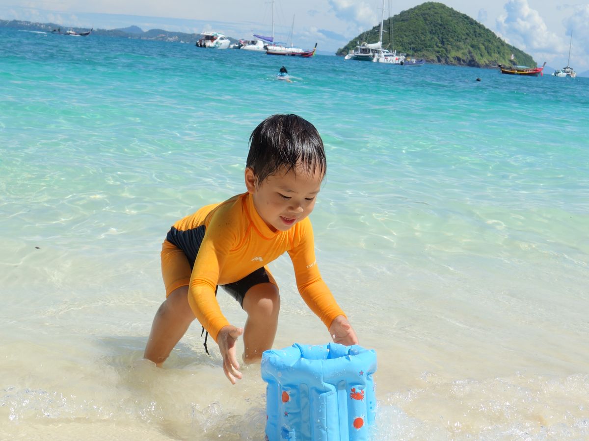 お子様と一緒に離島へ遊びにいくなら、アンディ様もおっしゃる通りコーラル島は近くて遠浅なのでお勧めです。プーケット本島よりもキレイな砂浜と透明な海が見られますし、何よりビーチにゆっくり滞在できるのが魅力ですよね。とってもかわいい3歳のお子様と海、ビーチのお写真には本当に癒されました!