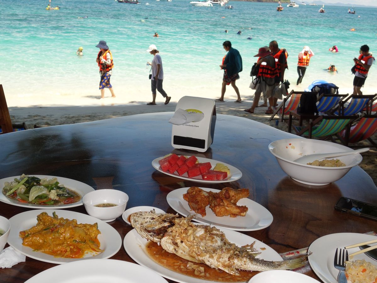 朝は潮が引いており、予定よりも少しだけ待ってから出発。スピードボードであっという間に到着。ビーチチェアは1個100Bで一日レンタルできます。私たちは何もアクティビティを申し込まなかったので基本フリー。シュノーケリグを楽しみました!が、日本語ガイドの言う通り、ウニが山ほど、、、