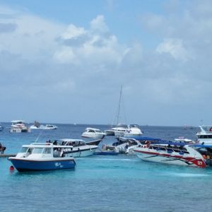 初めてラチャヤイ島のシュノーケルに参加しました。移動の船はかなり高速なので通常なら酔う私でも酔わずに島まで着けました。ただ、大波を越える度にジェットコースター並みのスリルでした。シュノーケルは3ヵ所で体験できる予定で、一つ目は到着した港で、二つ目はシュノーケルポイントへ移動して堪能できました。三つ目は昼食を挟んででしたが、ガイドの説明がわかりにくかったため、港へ向かってしまい、行けずじまいでした。海はとてもきれいでしたが、最後のポイントがよかったようなので、少し残念な結果でした。次回はガイドからはぐれないようにしようと思います。