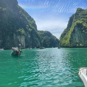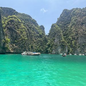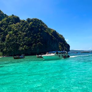 雨季にプーケットへ旅行に行きましたが、運良く晴れてました!(むしろ暑いくらい)ホテルまで送迎バスが来てくれて、港まで送ってくれます。着いたら大きな待合室で10分ほど待機。コーヒーやパンなどの軽食を食べながら待ちます。日本語ガイドさんを付けていたのでその人の案内で船に向かい、今回のツアーの説明を受けたら、いざ出航!参加者は日本人も数組ですが、ほとんどは現地の家族や、他の国の観光客でした。ツアーはシュノーケリングがメインで、寄った島でお酒やトウモロコシなどの屋台の食べ物を買うこともできます。とにかく晴れた日のピピ島はまさに島巡りに最高です!ランチもタイ料理をビュッフェで食べることができて、グリーンカレーはめっちゃ美味しかったです!プーケットに行った際は是非晴れの日に合わせてピピ島に行ってみてください!