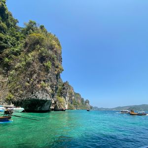 マヤビーチが本当に綺麗で、足首までしか入れませんが一見の価値ありだと思います。シュノーケリングは初めてでしたが、ライフジャケットを着て安心して楽しむことができました。海が綺麗で魚や珊瑚もたくさん見ることができました。カイ島では海で遊べますが、岩や砂浜がゴツゴツして痛いのでマリンシューズ持参がおすすめです。