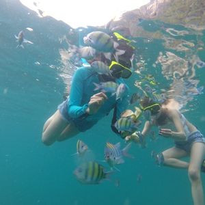 島々を移動してのシュノーケルなので回数も多いwおなかいっぱいなるかもwでも案内してくれるスポットもよくて沢山の魚をみることができました。バナナで餌付けするとびっくりするくらい魚が寄ってきます❗️写真は、有料だけどたくさん撮ってくれるし、水中と陸上撮影もありますwプロカメラマンですし綺麗なので撮ってもらった方がオススメです。朝ははやいですが、早起きした甲斐はあります。お昼ご飯のビュッフェも充実していました❗️