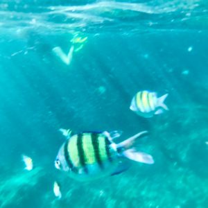 そのあと海上に船を止めてシュノーケルをしました。たくさん魚がいました。カラフルな魚もいました。