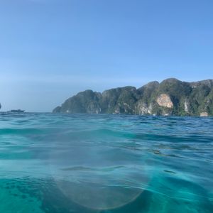 出発場所に着いたらグループ分けをされ朝食バイキング会場へ案内されます。そこで体感1時間ほど過ごしたと思います。グループ担当スタッフからツアーの説明があります。彼氏が英語が分かるので英語ツアーに参加しましたが、英語が分からない私でも簡単な英語で説明していたので理解できました。いざ、船に乗り出発です。早朝ということもあり船の移動中はほとんど寝ていました。でも安心です。早朝スポットのところでちゃんとスタッフの方が起こしてくれて写真を撮るタイミングもあります!次にシュノーケリングスポットに移動し始めてのシュノーケリングしました!水中からカメラマンさんが写真を撮ってくれました。次に映画でも有名なマヤビーチに行きました!あまりの海の綺麗さに感動しました!海で泳ぐこともできるしたくさん映え写真を撮る時間がありました。船の中ではジュースや水、お菓子、フルーツなどを次から次へと出してくれてたくさん食べることができます!次にピピ島に到着するとバイキングランチをしました。バンキングランチはチキンが美味しかったです。ピピ島の滞在時間は1時間と決まっており、ピピ島を探索する時間はあまりなかったですがたくさんの映え写真を撮れたので満足です!最後にバンブー島へ到着しました。個人的にはバンブー島が一番感動しました!あまりの海の白さと透明度に興奮してたくさん写真を撮りました。彼氏と写真を撮っていたら優しいスタッフさんとカメラマンさんが映える写真の撮り方のアドバイスをして下さり貴重な写真を撮ることができました。カメラマンさんは常にランダムに写真を撮っており最後の船の中で写真を購入するかについて説明がありました。私たちは一度きりの思い出だからと思いそんなに自分達の写真は撮られていないかもしれないけど購入してみました。あまり期待をしていなかったですが後日記入したメールに添付された写真をみたら、気づかずに撮ってくれた映えた写真がいくつかあり、さすがカメラマンさんの写真でした!購入して良かったと思ったのと最初から購入すると決めてたくさん映えスポットの時に撮って貰えば良かったな、、と後悔しました。無事に帰ってきたときにはまだ16時くらいなので午後も遊ぶ時間を設けることができるので早朝ツアーを選んで良かったと思いました!スタッフの方やツアー会社の方対応が迅速なのでこのツアーはオススメです!!