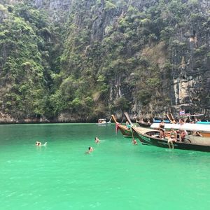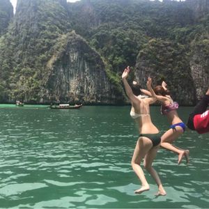 朝の出発が早いツアーではありますが、そのおかげで無人島を独占することができ最高でした!無人島で朝食を食べ、その後もスピードボートでたくさんの島を回ってくれるのですが、途中船酔いしてしまったことだけが残念です…。ピピ島に到着した時に、船で待機してるより海に入って浮いてる方が酔いは楽ですよっていうガイドさんの言葉に流され、気分の悪い状態で海へ…。ガイドさんの言う通り、海に入ってる間は気分の悪さがマシになり、たくさんのキレイな魚を見ることが出来ました。その後、船に戻ると気分の悪さがまたまた復活してしまいましたが、船酔いの部分以外は本当に最高のツアーてした。