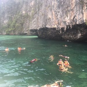 最高のツアーでした!プーケット旅行のいちばんの楽しみとしてこのツアーに参加しました。他のツアーと比べて、早朝に出発することで混み合うのを避けることができること、沢山の島を周ることができることに魅力を感じてこのプランにしました。雨季に参加ということもあって雨が心配でしたが、当日は見事に晴れて(滞在中、雨は夕方のスコールくらい)良かったです。朝日を見ながらの朝食、シュノーケリング、ピピ島での昼食、どれも素晴らしかったです。どの場所も私たちのツアーが一番乗りで着いて、混み合ってきた頃に次の場所へ、という流れで人が少ない中、遊んだり綺麗な写真を撮れたりと本当にこのツアーにしてよかったです。スタッフの方もとても親切で、日本語を話すことができる方も2名おられて、英語ができない方も安心して参加できると思います。本当にオススメのツアーです。