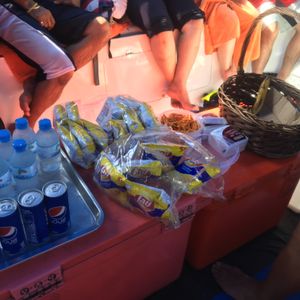 朝食も、、、☕、が用意されていて、ビーチタオルも貸してくれます。ガイドさんはとても明るく親切でわかりやすい英語で丁寧に説明してくれます。スピードボートの中でも、水はもちろんコーラ、フルーツ、ポテチなどおもてなしがあります。