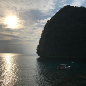 朝日や景色を見ながらピピ島へ約1時間。お天気は最初は曇っていましたが、そのうち陽が出てきて感謝です。