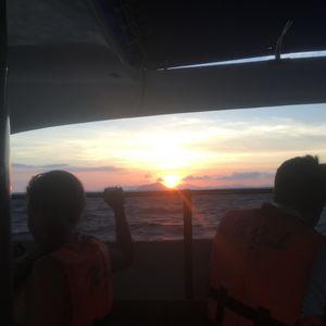 早朝スタートでスピードボート出発直後に日の出が見れる。