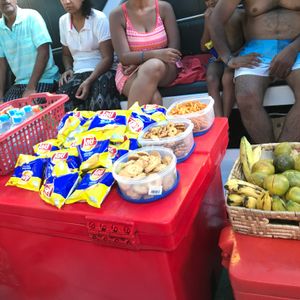 船の中ではチップスとクッキーが置いてあり、水1本ずつと炭酸ジュースを自由にとっていいスタイル。最後に新鮮なフルーツも船の中でいただけた。