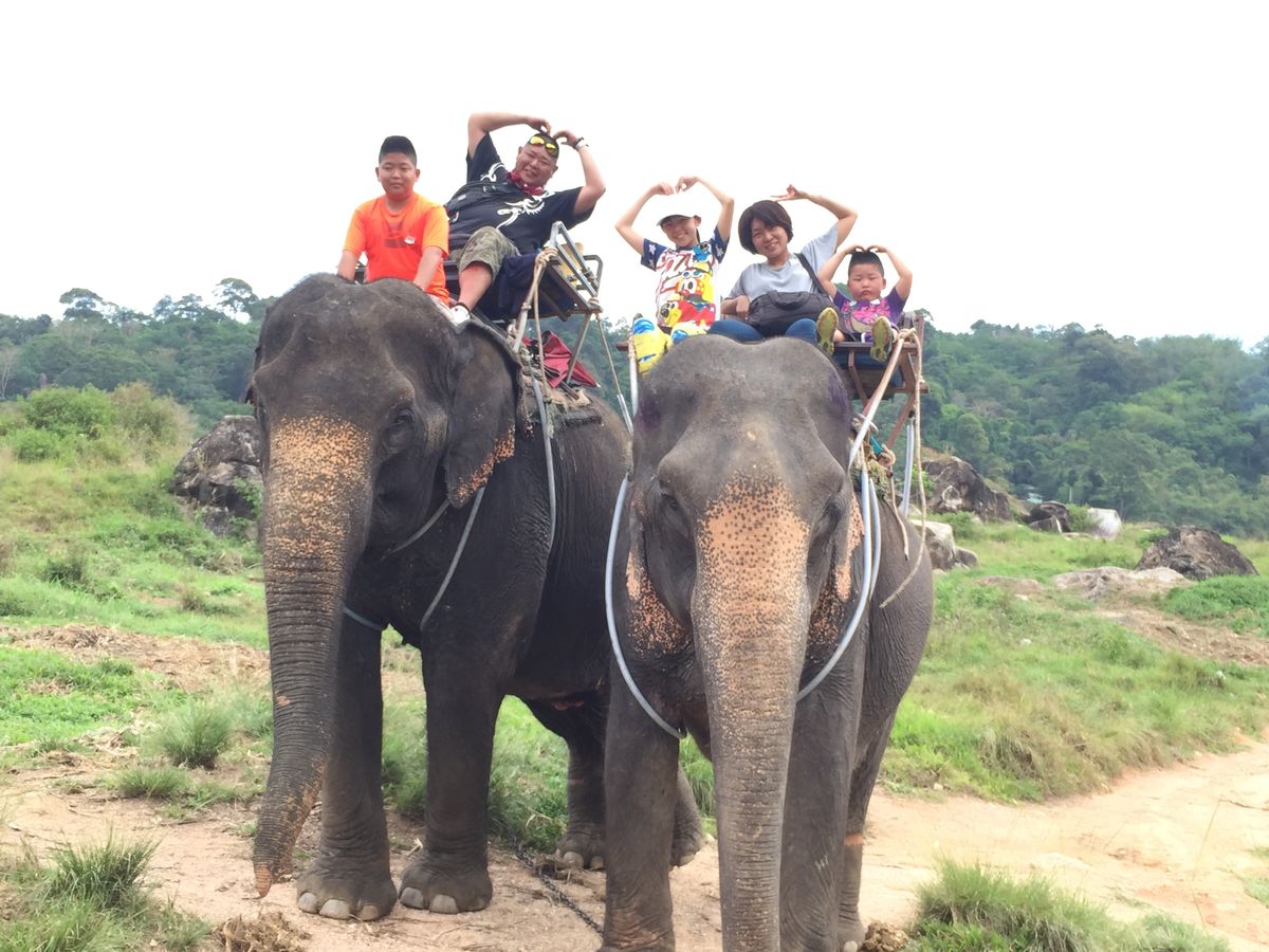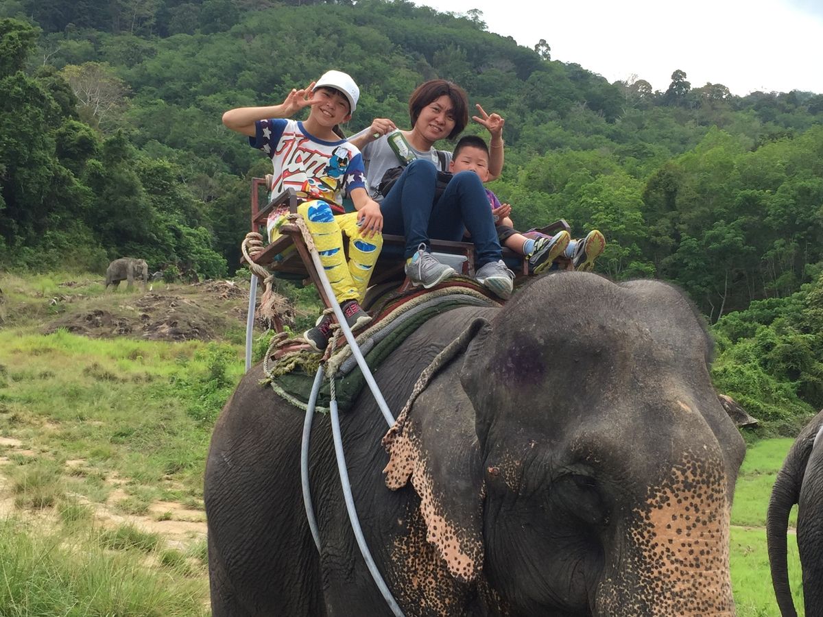 うちは子供1人の3人家族ですが象には2人までしか乗れず、夫の私が先頭の象に乗り家族を撮影する予定でしたが、逆になってしまいました。象の乗り場が左右に分かれていますが、先頭は右側なので気をつけてください。ちなみに象乗り1時間コースを選びましたが、小さいお子様の場合は30分のコースでもいいかも。ちなみに場所はパトンビーチから30-40分程度のところでした。行く途中にビッグブッダが見えたので、帰りにホテルに戻らないでビッグブッダで降ろしてもらうように交渉すると時間の節約にいいかも。