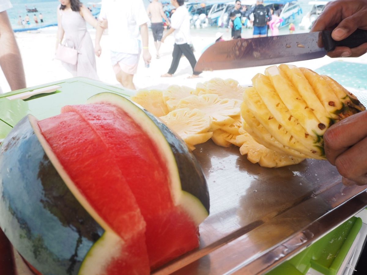 そこでスタッフさんが、スイカとパイナップルをカットしてくださり