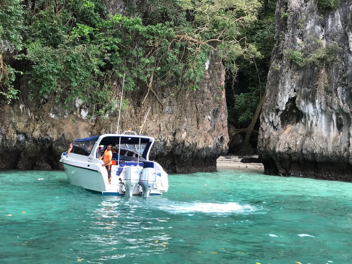 ピピ島へ行くにはスピードボートが一番です、たくさんのビーチに寄れますし、海の状況を見ながらベストポイントでスノーケリングが