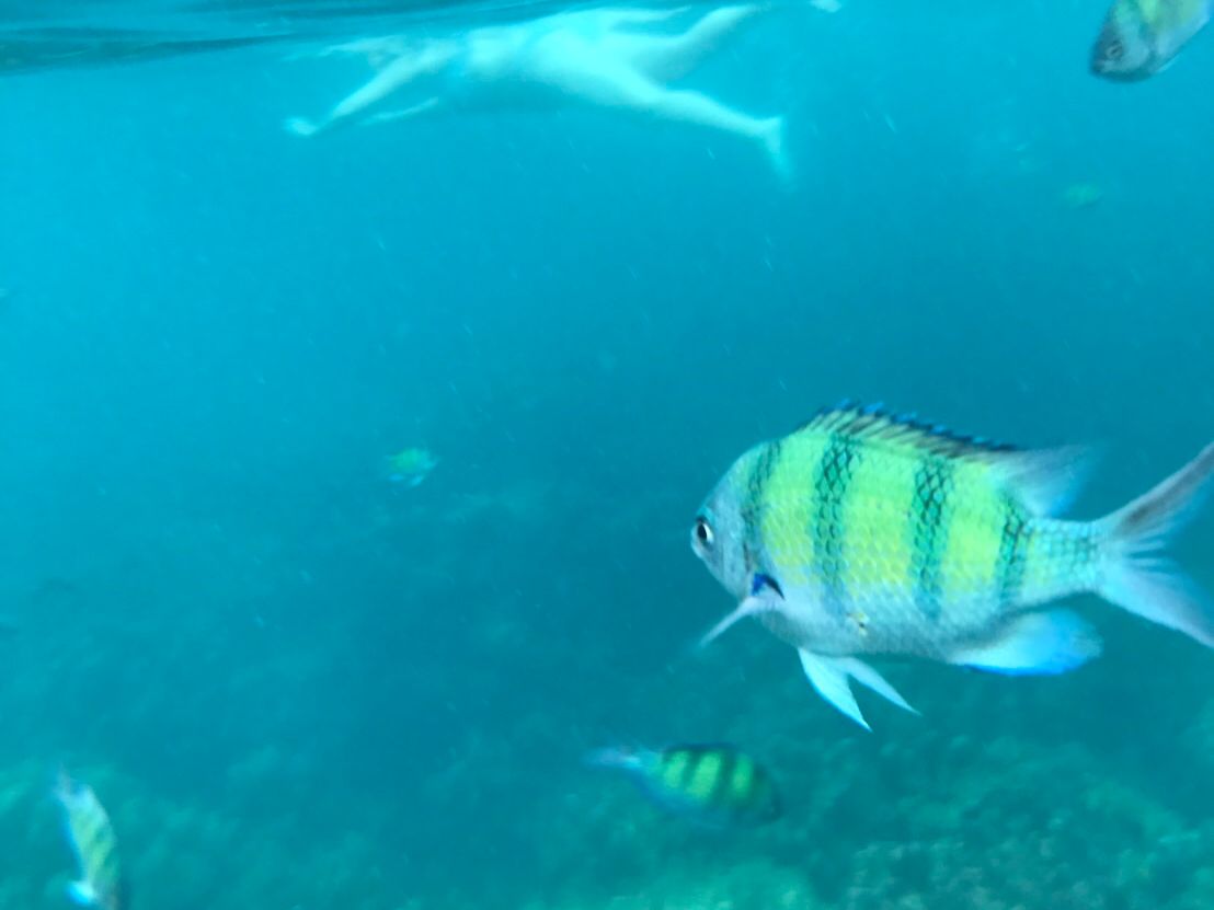 カイ島に着くと1時間くらいの自由行動でシュノーケリングをしましたが、透明度も抜群で、すごく綺麗でした。