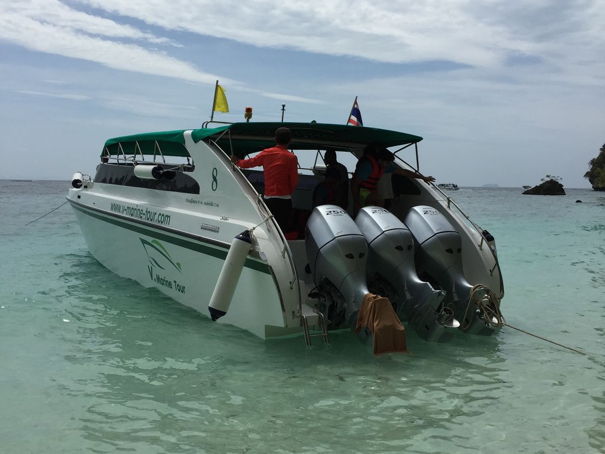 ピピまでは時間が結構かかります。こどもには酔い止めを飲ませていましたが大正解。海は荒れていなかったし、天気も最高でしたが時間が長いので酔う方もいました。優先乗船で好きな席が選べました。ボートで水、オレンジジュース、コカコーラが飲み放題でした。途中サル島は船上から見学、上陸しなくても十分でした。その後、よさそうなポイントで希望者はシュノーケル。必要なものは全て船上で無料貸出なので気軽にみんな海へ。船上からも色とりどりの魚が見えるほど透明感抜群!スタッフも一緒に海へ入ってくれ、シュノーケルの指導もしてくれます。小4のこどもも安心して楽しんでいました。その後、「ツバメの巣」を採るという洞窟を船上から見ながらもうすぐピピ島。到着したらまずはランチ。ビュッフェがすでに用意されており席を決めたらすぐに食べ始められます。食事の時間は十分だと思います。その後、ピピの別の美しいビーチへ。ここは小さなビーチで他のツアー客ともかぶるので人やボートはいっぱいですが・・・写真撮影には十分な時間。カイ島へ向かう途中またシュノーケルポイントで船から入れます。カイ島ではパラソルとチェアでゆっくりしているとパイナップルとスイカを切って持ってきてくれます。魚に与える用にバナナもくれます。海に持って入るとびっくりするぐらい魚が寄ってきて囲まれます!これにはこどもが大興奮でした!十分魚も見られたところで帰途につきます。ガイドさん、船のスタッフは英語で(しかも現地訛り)説明するので聞き取りにくい時もあります。参加者はほとんどが外国人でしたが、母国語が英語ではない方もたくさん参加されていたし、困ることはありません。自分のボートの番号さえ覚えていれば(最初に説明ありますが)迷うこともなかったです。移動は長いですが、途中で海に入れたりするので無駄がなく1日充実していました。こどもも楽しめ大興奮!参加してよかったと思います。