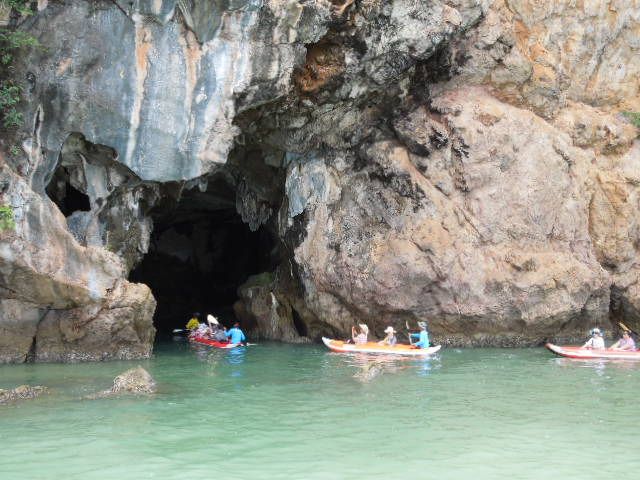 いくつもの同様なツアーと合流して島にいくものです。各自色のついたシールを渡されて、例えば、黄色シールはここで下船、緑はここにステイ。シュノーケリングしたい青の人はツアーに含まれてるので希望者は隣の部屋にという具合で船のスタッフから指示をうけます。とにかく、人が多すぎで(私の時は現在の国際図を表すようにインド人、中国人ばかり)、席も足りず混雑した駅にいるような錯覚。結局ホテルを出てから2-3時間でピピ島に。150人くらいでビュッフェランチ(種類少なし、補充ほぼなし)。島滞在は合計2時間あるかないか。すっかり疲れきりホテルに戻りました。。