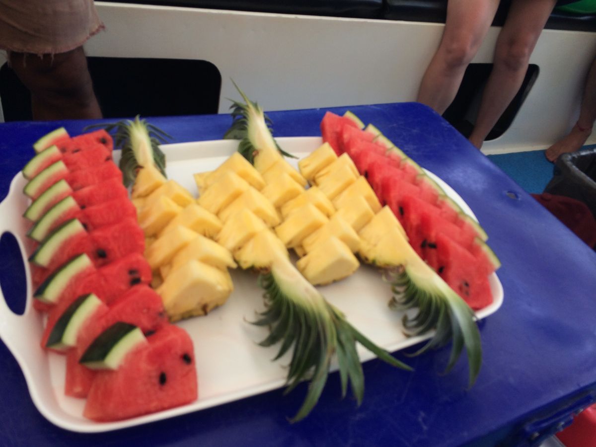 ボートに戻るとスイカやパイナップルを無料で提供していただきました。