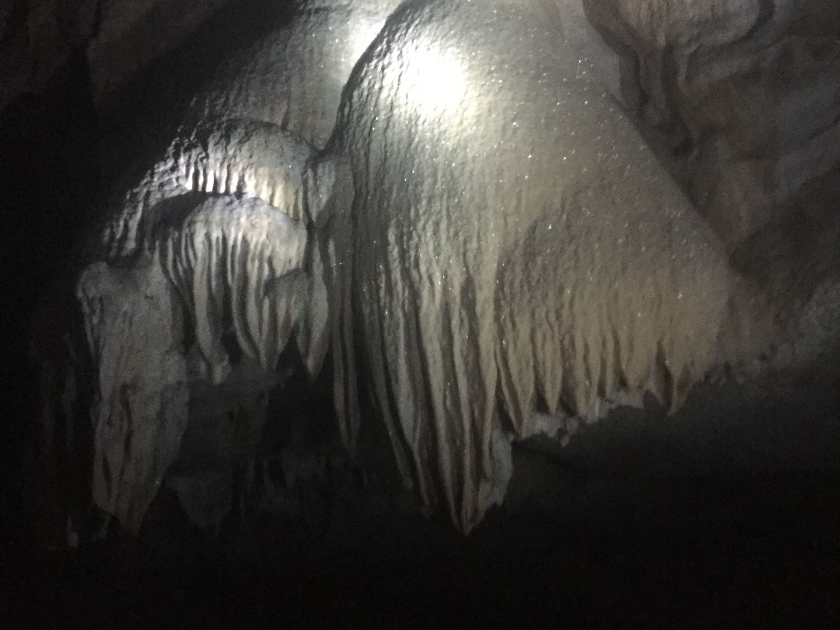 キラキラ光る鐘乳石なども見られました。