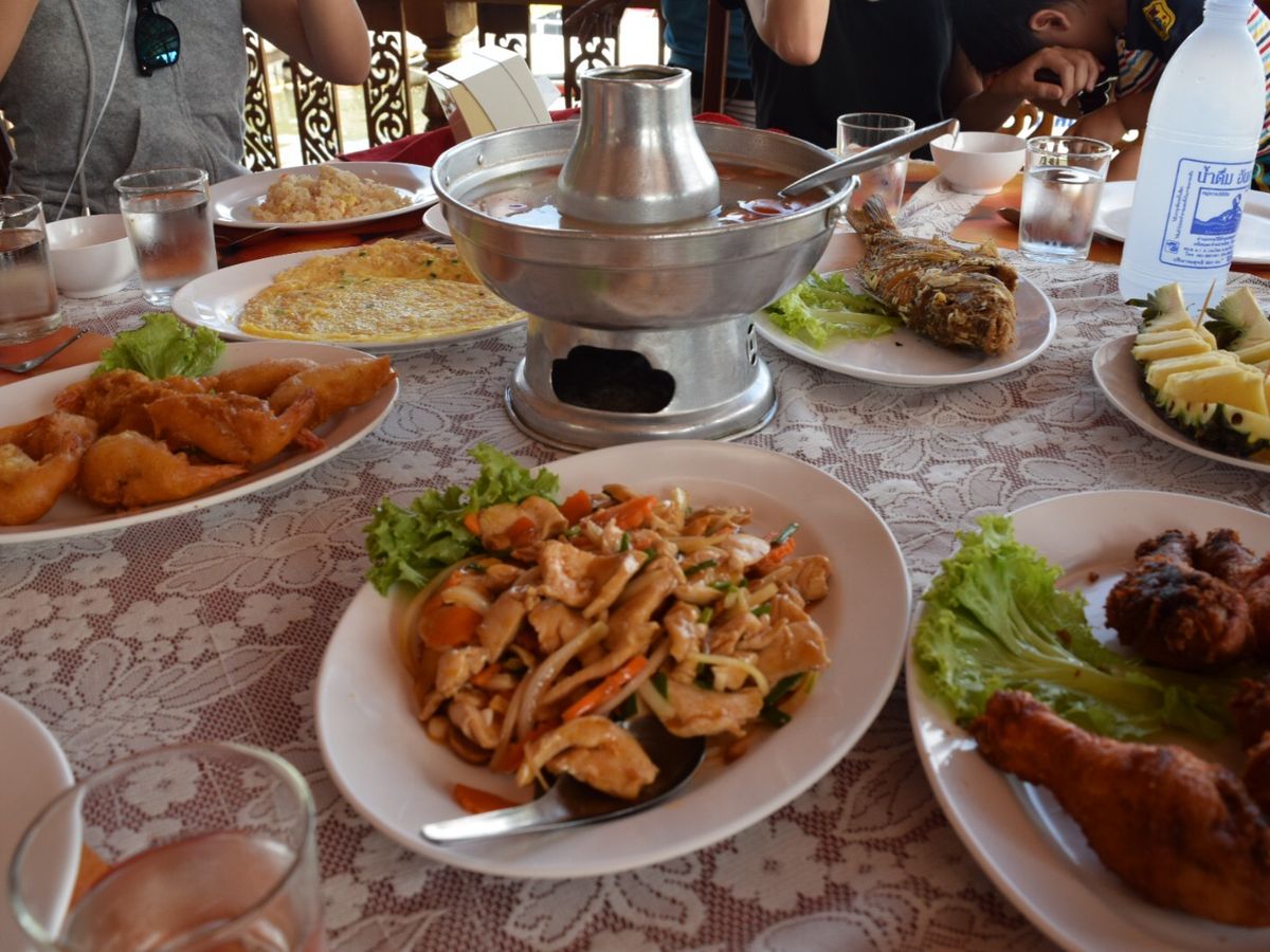 お昼は水上でした。船からレストランまでの間、地元の子供達の売込みが多かったのですが、地元の小学校などを見ることができて楽しめました。料理はボリュームがあり、美味しかったです。そして、トイレがとても綺麗でした。