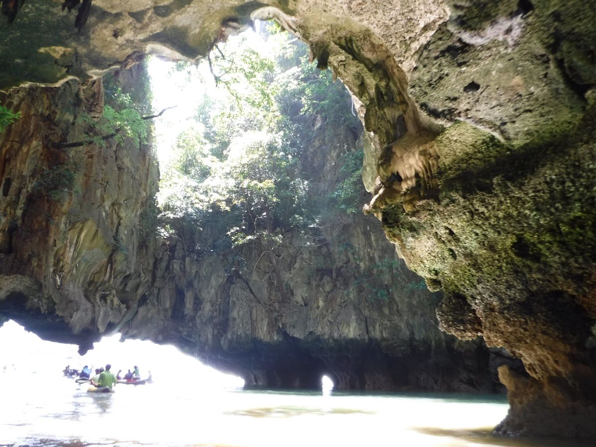 通り抜けるのに寝転ばないといけないような洞窟は動画を撮影しました。ただ、他のツアーの方もたくさんいて、カヌーの渋滞になっていました。