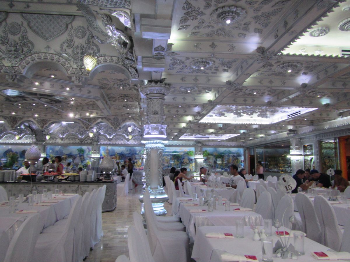 食事付きバッフェは皆さまのコメント通り期待できるものではありませんが、ここで食べないとタイミング的には難しいと思われます。アラカルトレストランもあるので試してみるのもいいかもしれません。バッフェは巨大な食堂にあらゆる人種が集まっている異様な雰囲気でした。どこに座っていいのかわからないまま、適当に座りました。